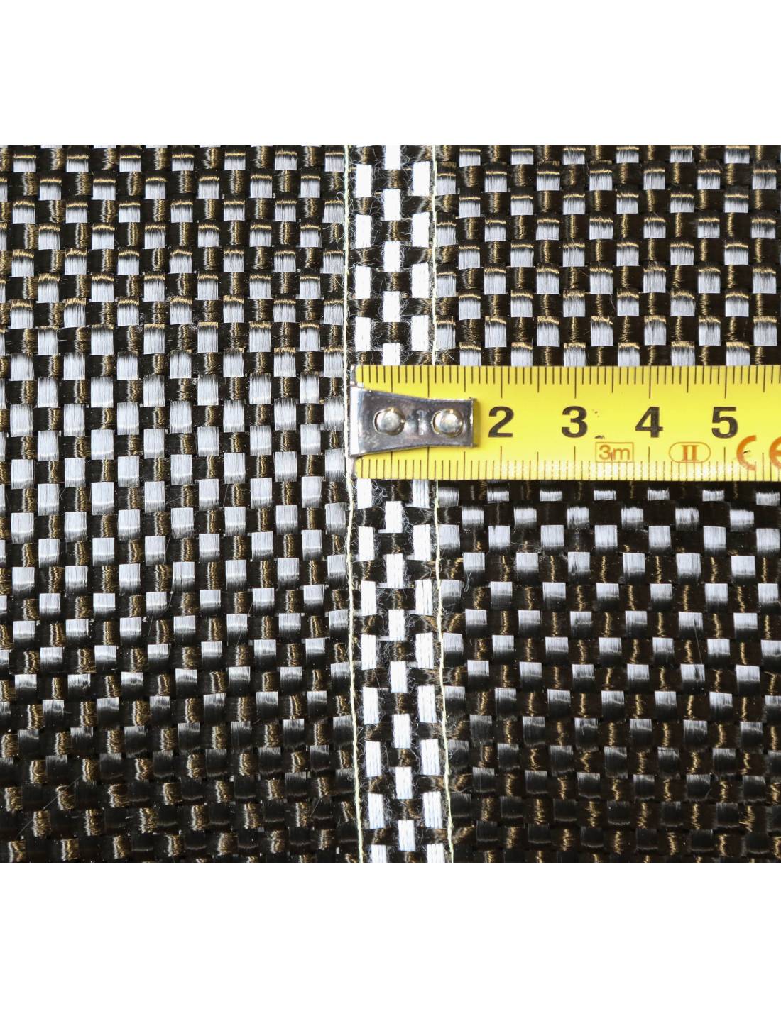450 g/m2 Taft-Carbongewebe mit zentraler Kennzeichnung für Hochleistungsanwendungen, bei denen hohe mechanische Festigkeit und geringes Gewicht erforderlich sind.