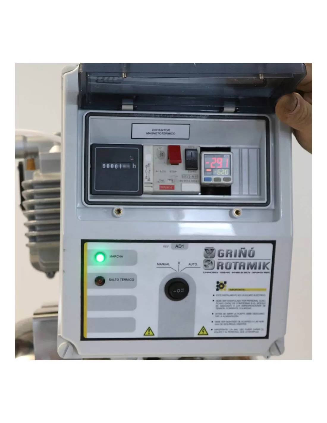- 1 Electrical cabinet with ABS casing and transparent window (230V single-phase power supply) With start / stop elements and protection for the motor